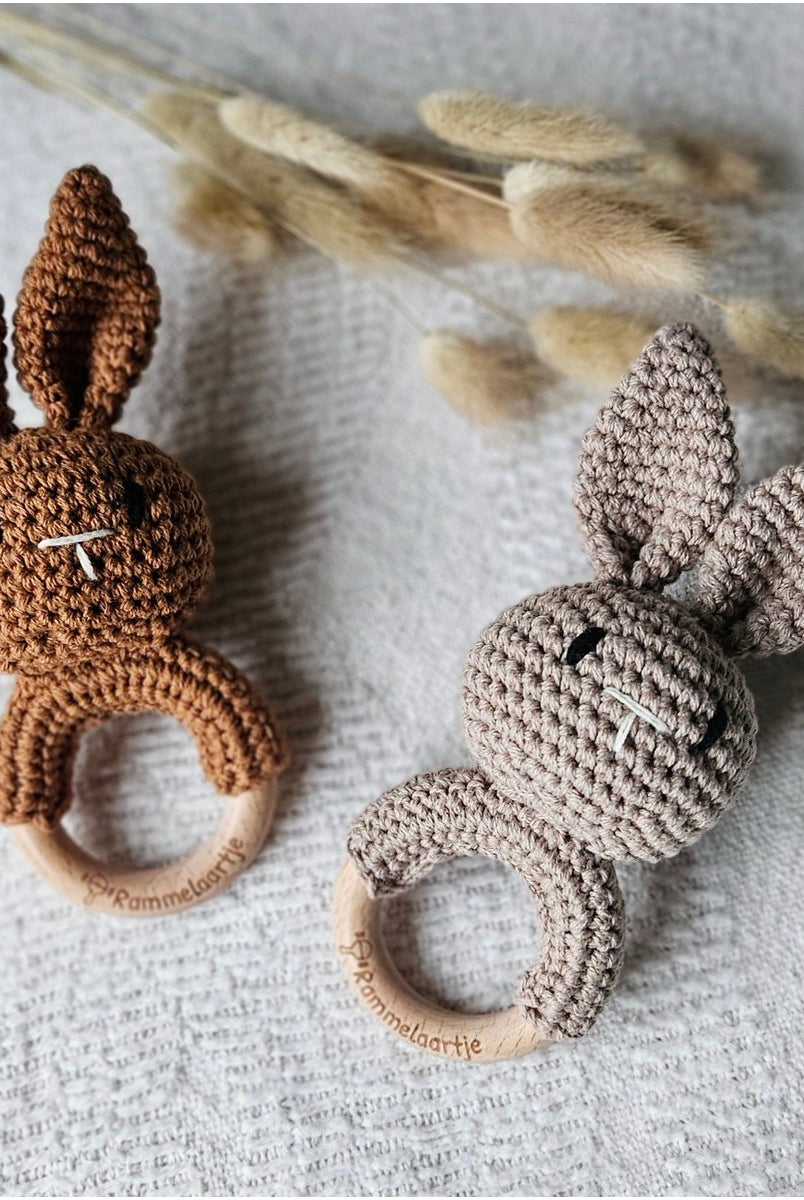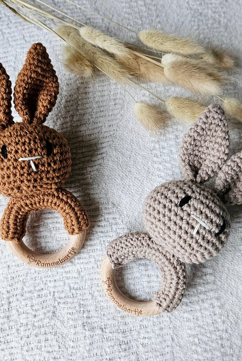 Rammelaars zijn een klassieker in baby speelgoed en helpen de zintuigen van je baby te ontwikkelen. Het geluid van de rammelaar trekt de aandacht van je baby en stimuleert de gehoorontwikkeling. Bovendien zijn ze vaak ontworpen om het vasthouden en grijpen te bevorderen, wat goed is voor de motorische ontwikkeling van je baby. Kies uit verschillende vormen, kleuren en materialen voor een stimulerende ervaring. -